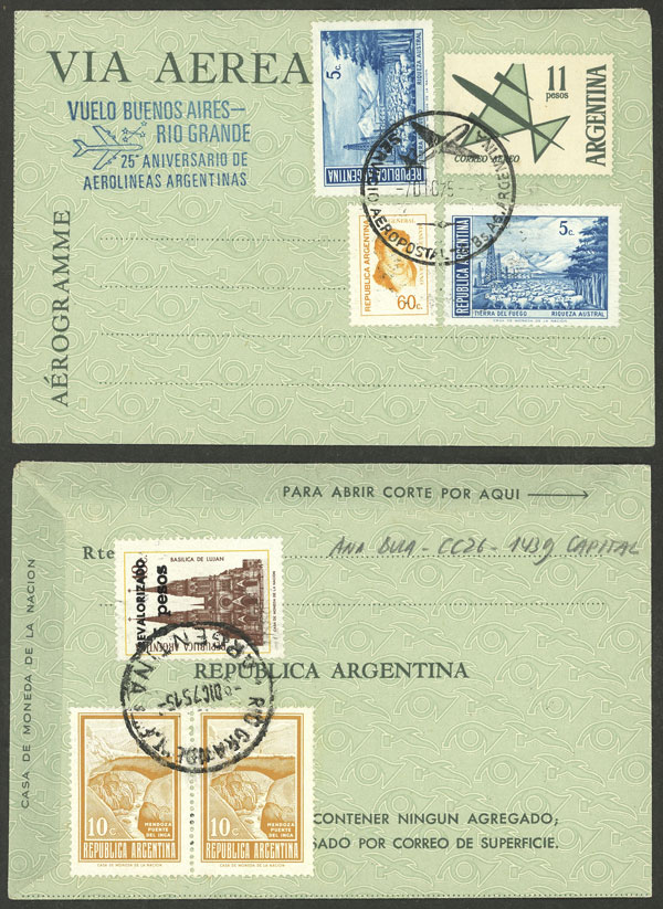 7/DE/1975 Buenos Aires - Rio Grande: Cover commemorating 25th anniversary of Aerolíneas Argentinas, with arrival backstamp (Image)