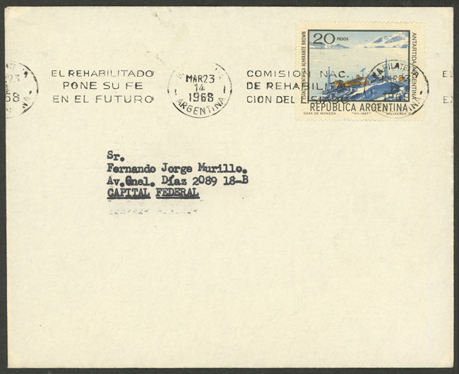 with slogan cancel "The Rehabilitated Puts Their Faith in the Future" for 23/MAR/1968 (Image)