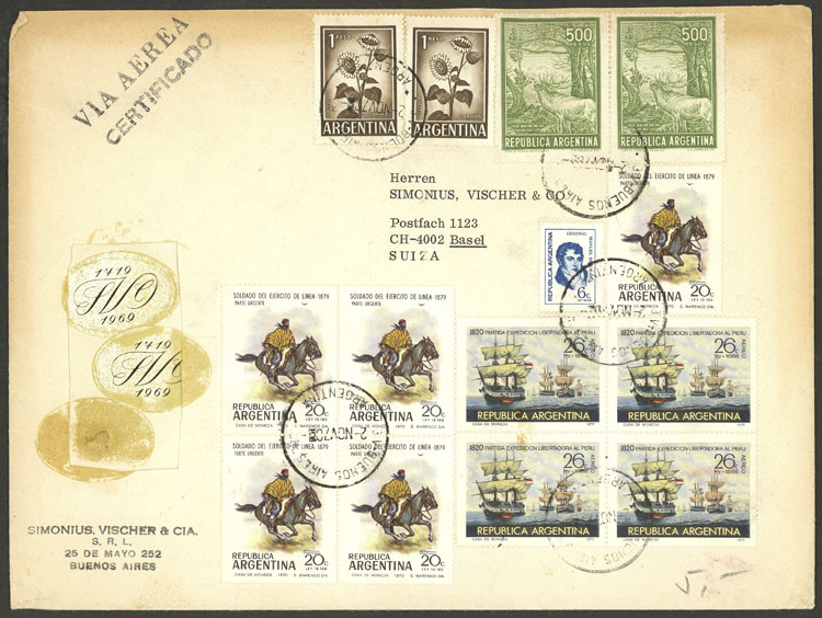 cover sent by registered airmail from Buenos Aires to Switzerland on 2/NO/1970, with spectacular postage of $1004.10, very nice (Image)