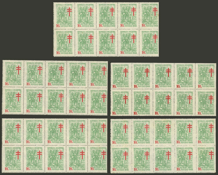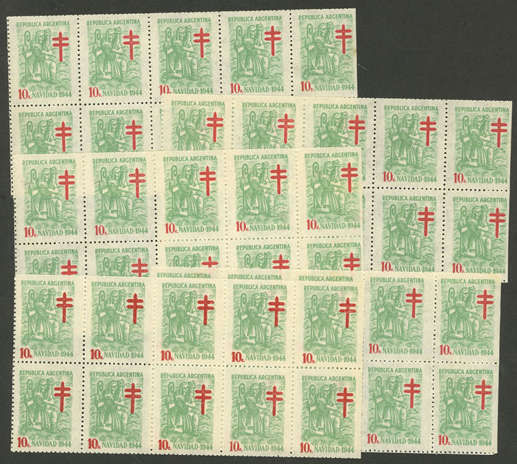 Complete envelope of the 14th campaign of the League against Tuberculosis, 1944 Christmas, containing 50 cinderellas of value 5 pesos m/n., excellent quality!