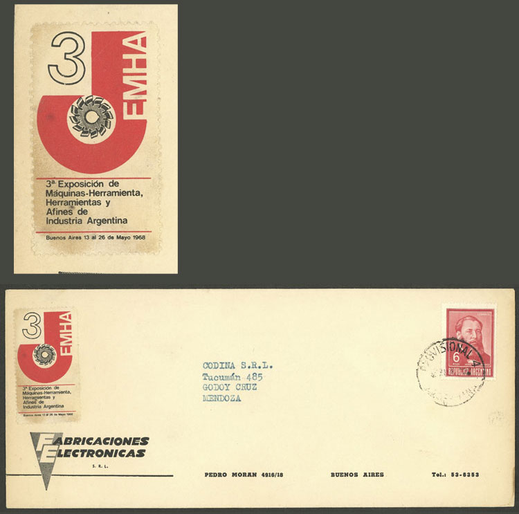 cover with a cinderella of the "3rd Exposition of Machinery, Tools of Argentina Industry", held in May 1968 (Image)