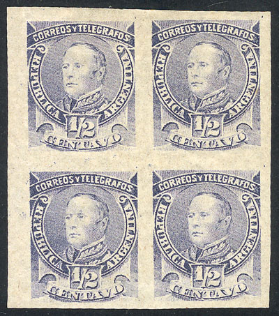 1889 ½c. Urquiza in gray-blue, IMPERFORATE block of 4, mint very lightly hinged, excellent quality! (Image)