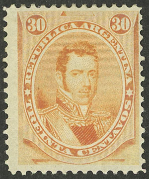 1867 30c. Alvear, mint with original gum, very fine quality! (Image)