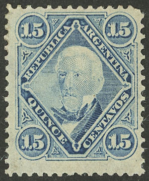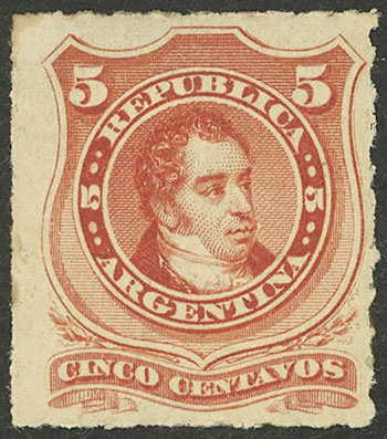 1876 5c. Rivadavia, rouletted, mint with original gum, VF quality! (Image)