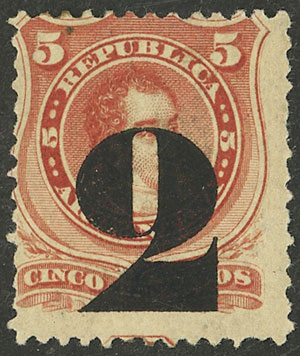 1877 provisional of 2c., mint original gum (+100%), VF quality, rare! (Image)