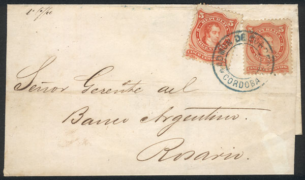 GJ.84, 5c. Rivadavia with large collar, franking a cover sent to Buenos Aires in FE/1889, with interesting CORDOVA datestamp, and arrival backstamps, very attractive! (Image) (Image-02)