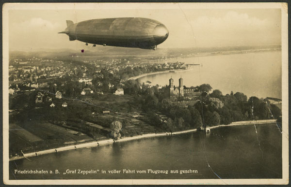 Postcard with view of Zeppelin in the air, franked with 2Mk. and dispatched aboard the airship on 30/AU/1931 to Argentina, very nice! (Image) (Image-02)
