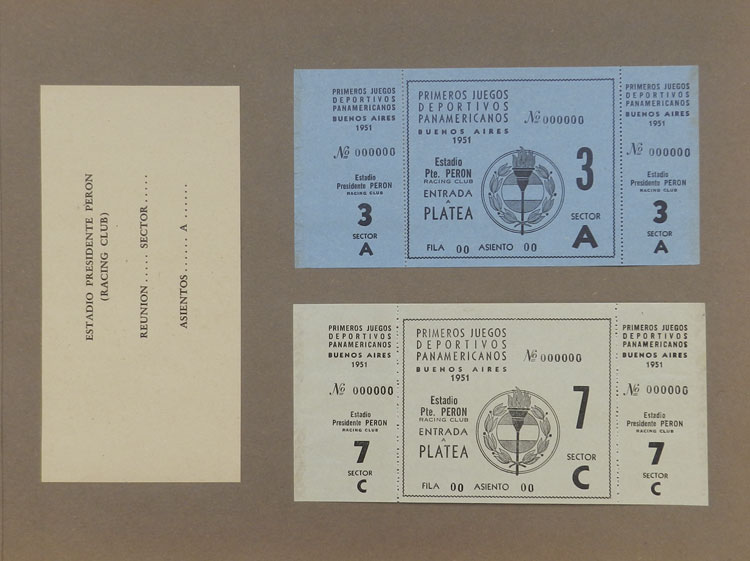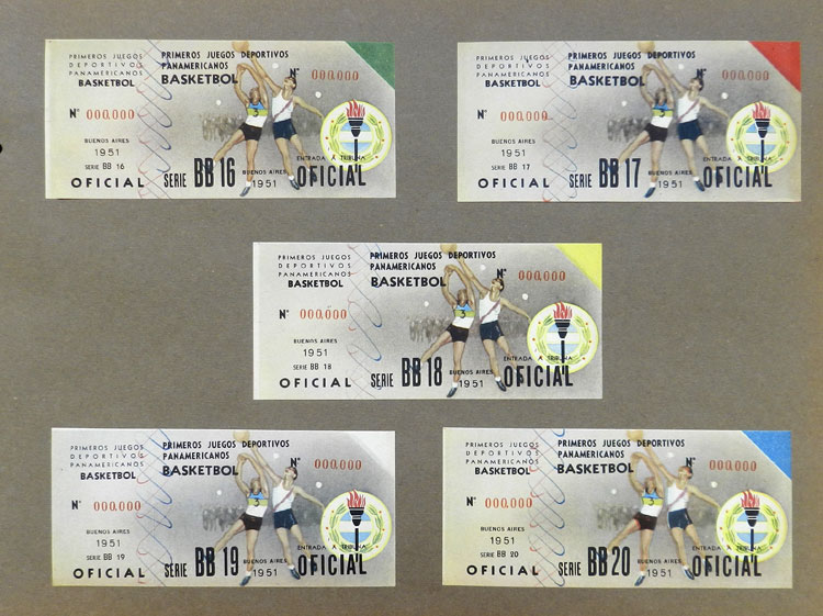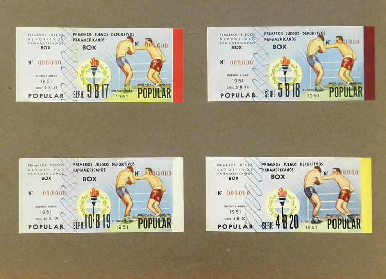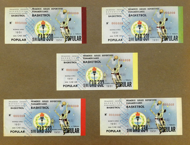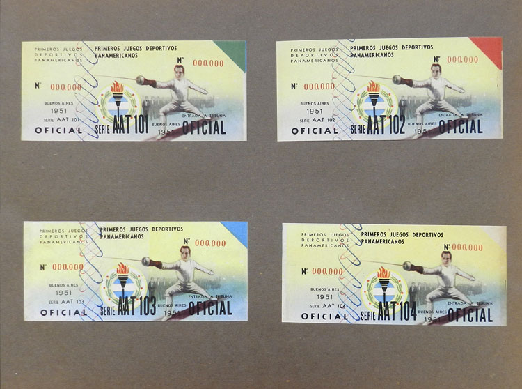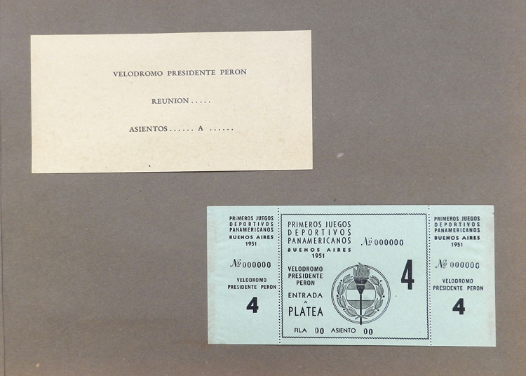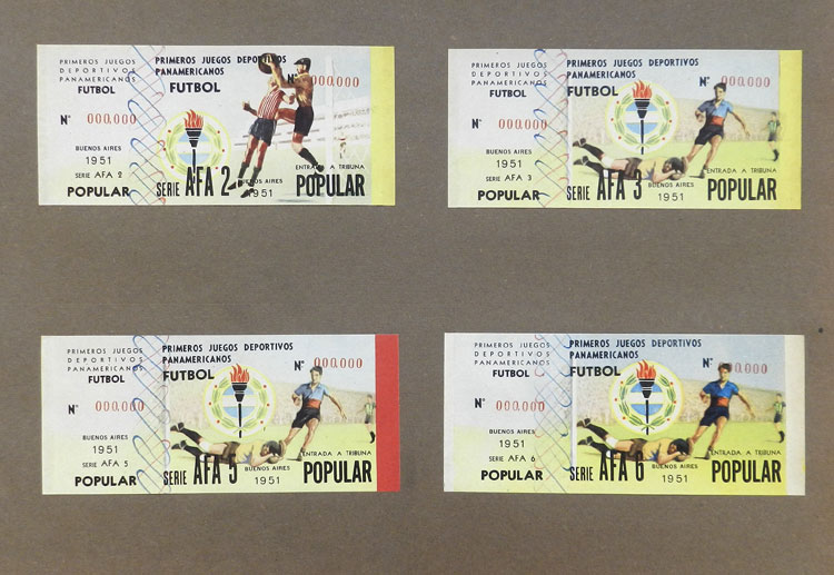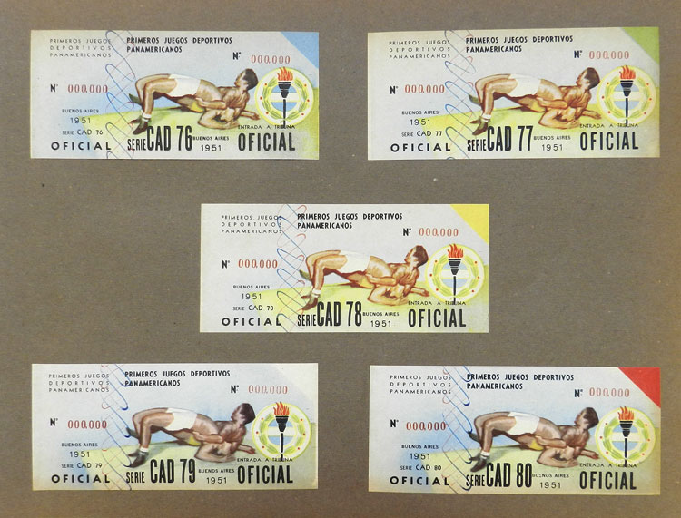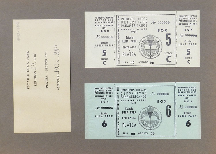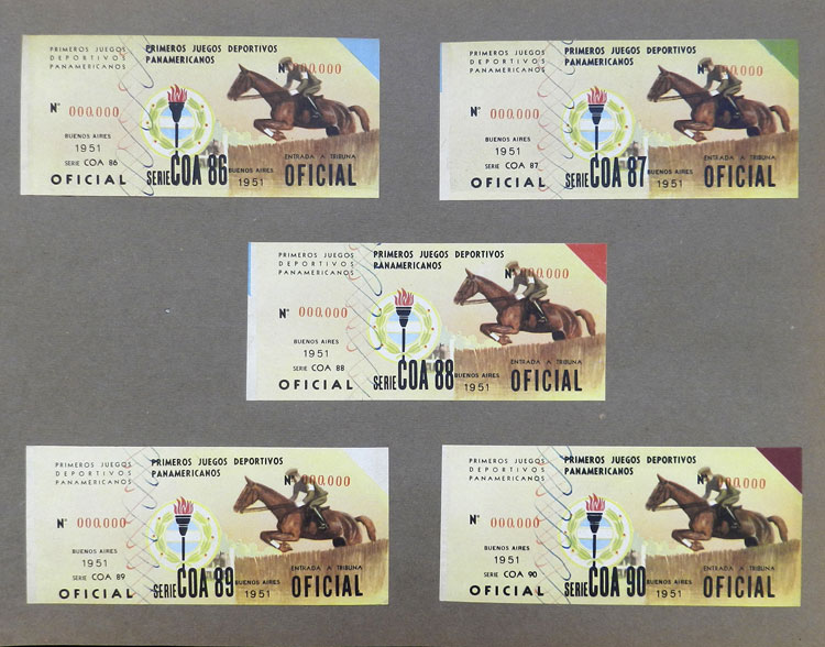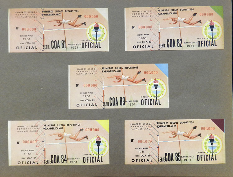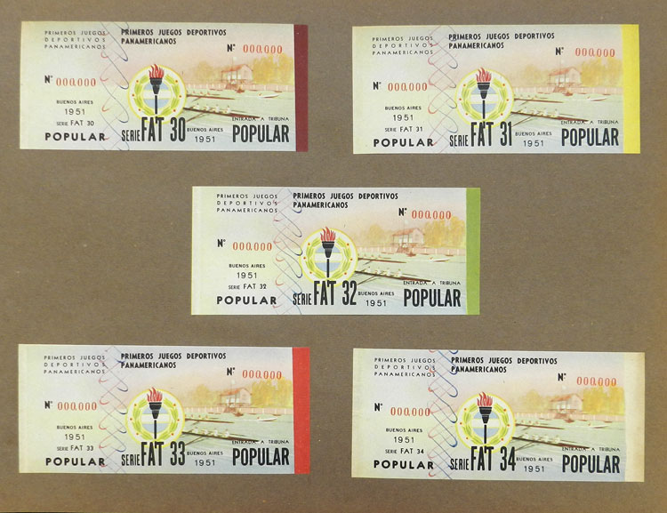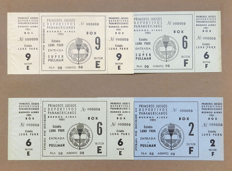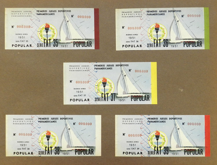 First Pan-American Games to be held in Buenos Aires in 1951, book with samples of entry tickets, it includes 249 ticket samples (all different) for the inauguration and the following sports: track and race, marathon, horse riding,