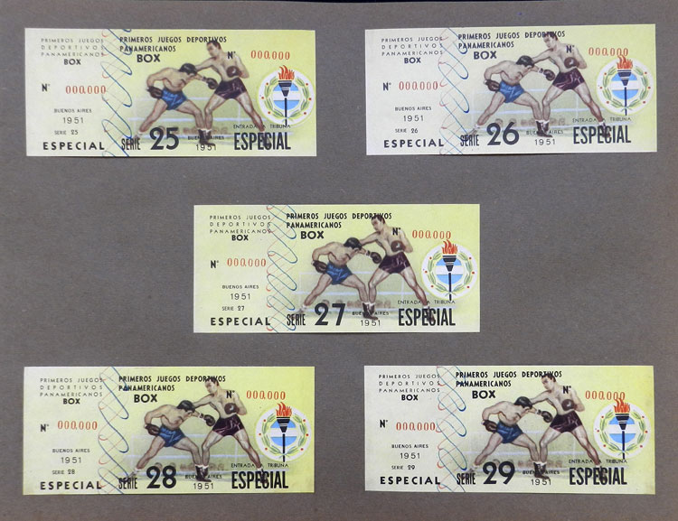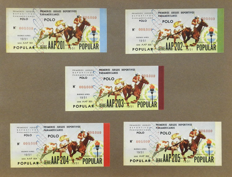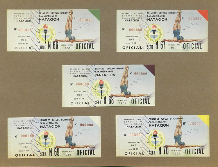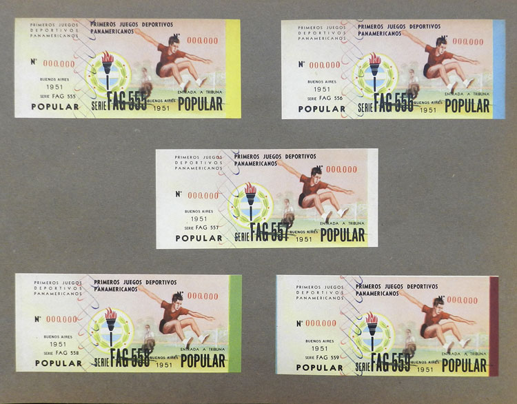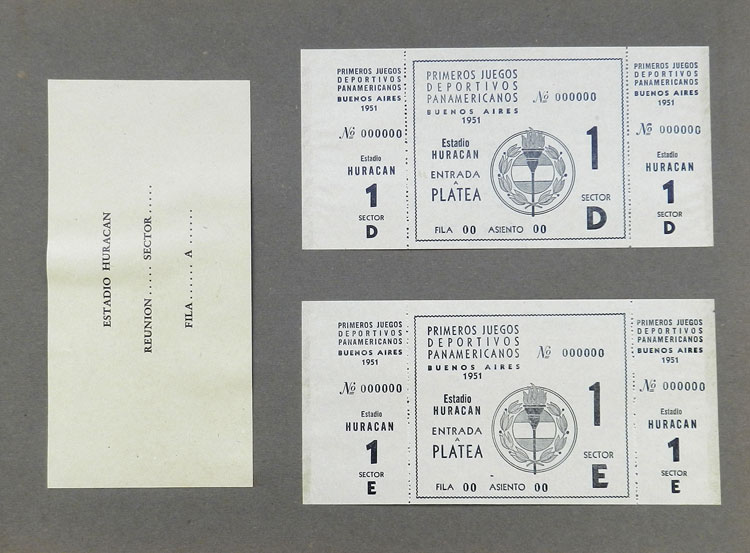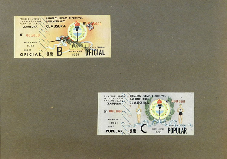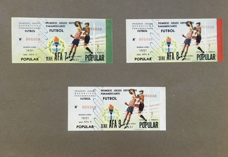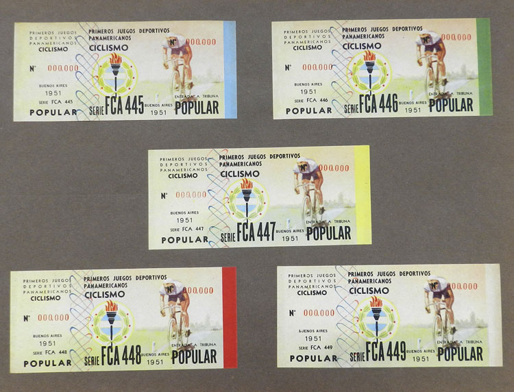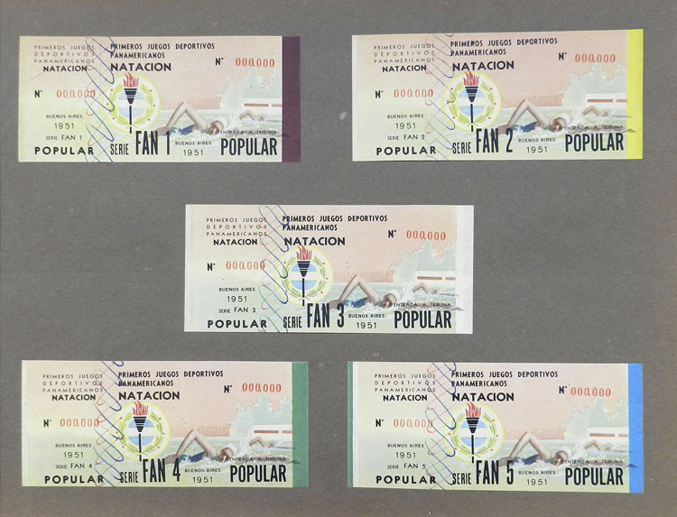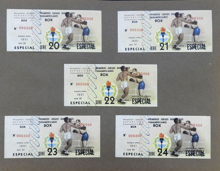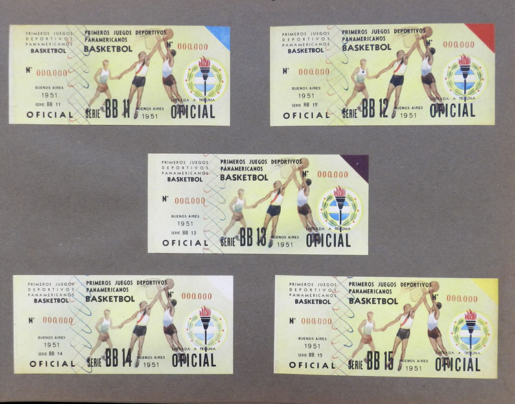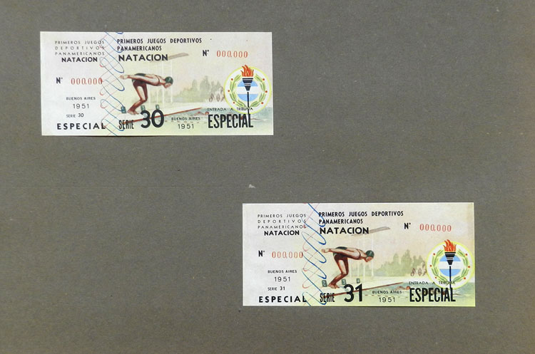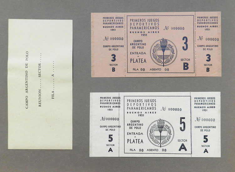 First Pan-American Games to be held in Buenos Aires in 1951, book with samples of entry tickets, it includes 249 ticket samples (all different) for the inauguration and the following sports: track and race, marathon, horse riding,