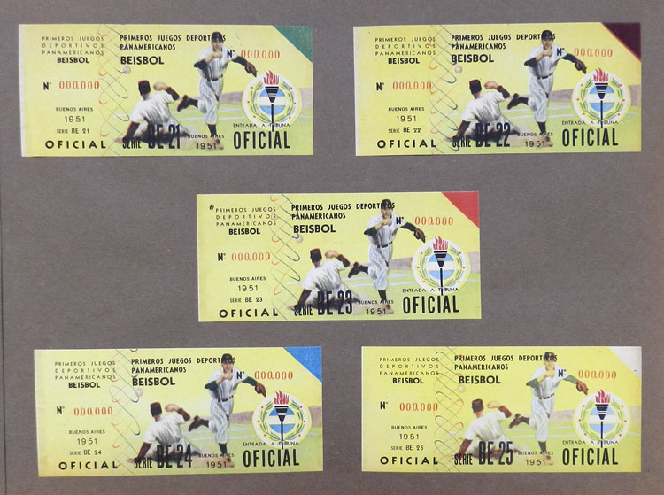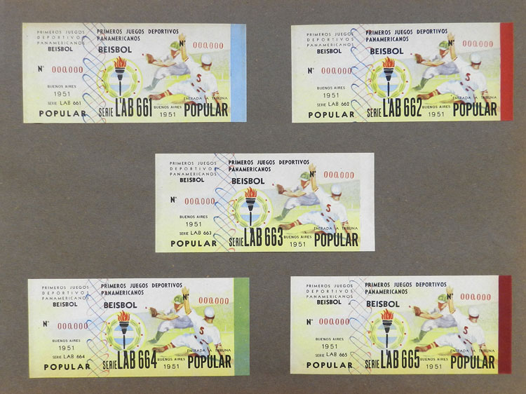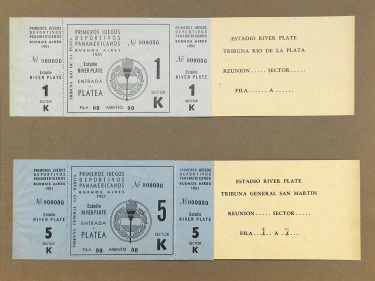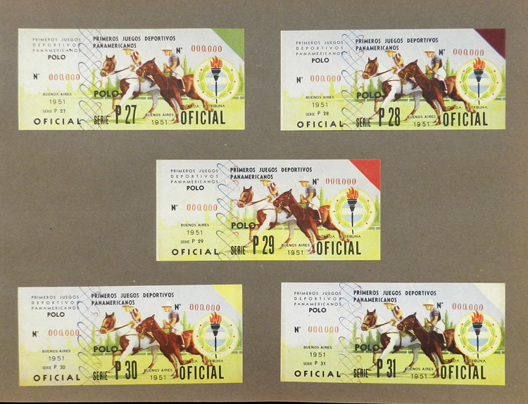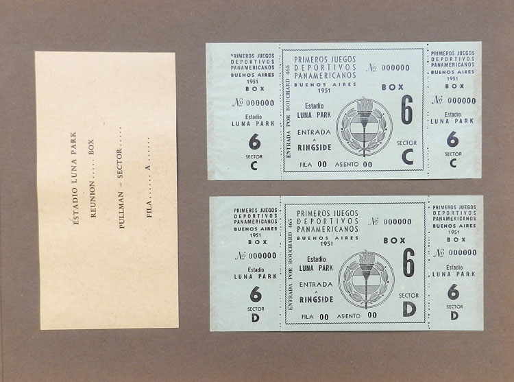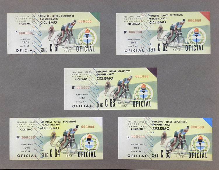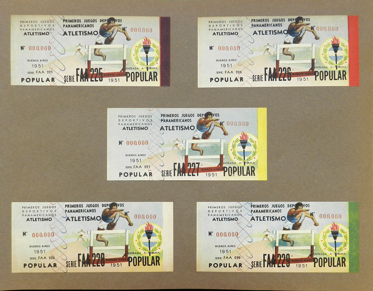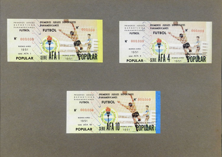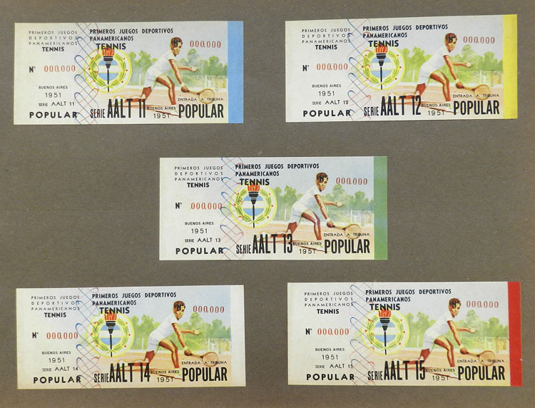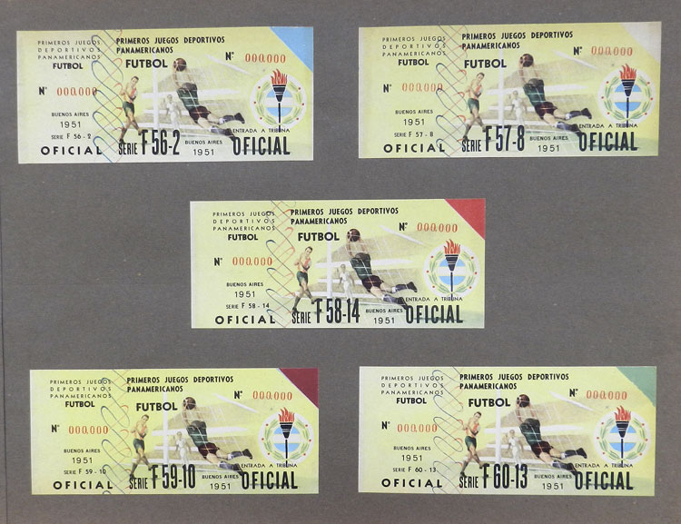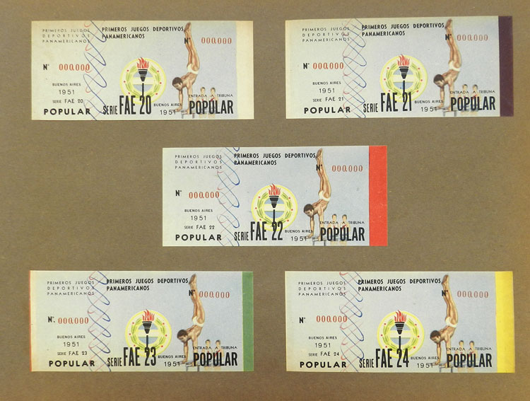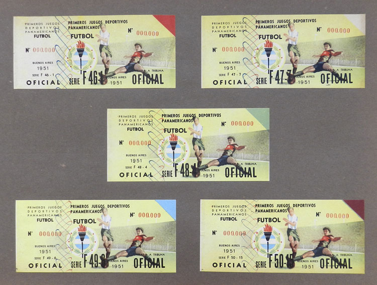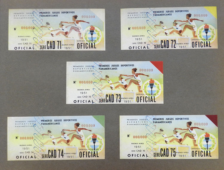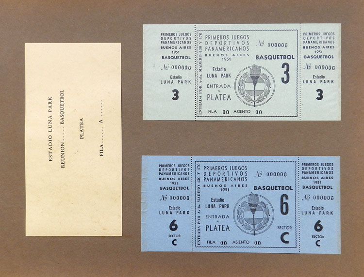 First Pan-American Games to be held in Buenos Aires in 1951, book with samples of entry tickets, it includes 249 ticket samples (all different) for the inauguration and the following sports: track and race, marathon, horse riding,