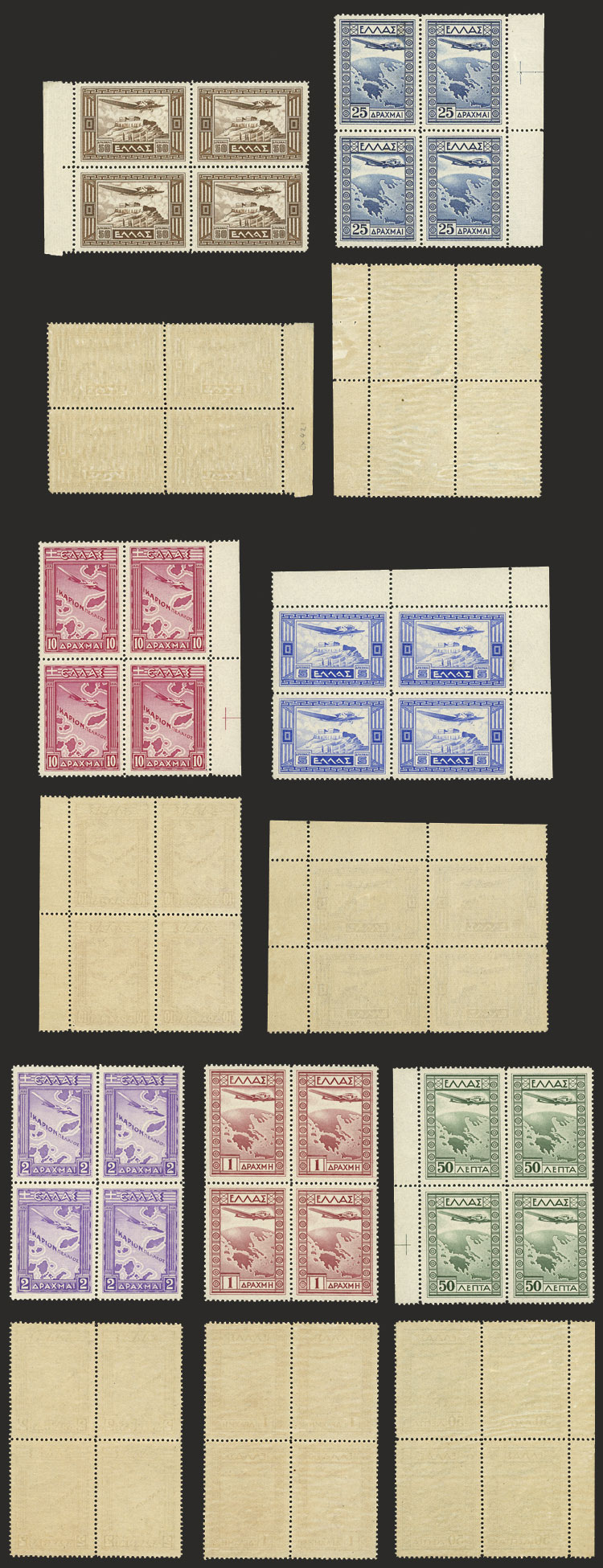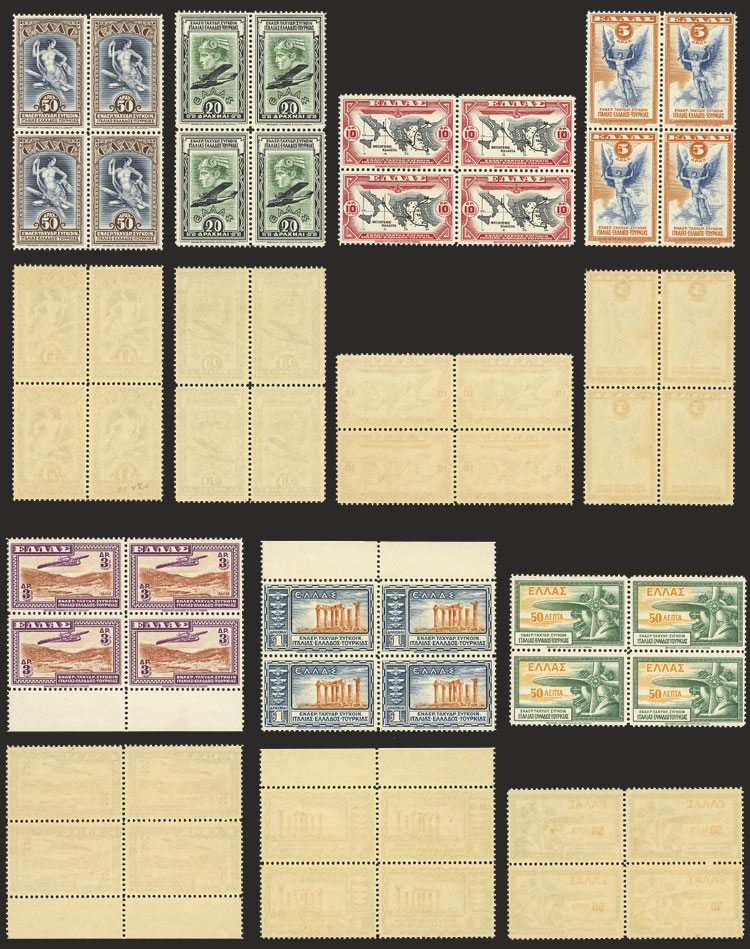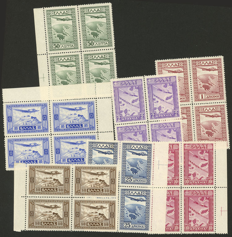 Yvert 8/14, 1933 complete set of 7 values MNH blocks of 4, but with some tiny and barely visible oxidation spots, else excellent. ATTENTION: Please view ALL the photos of the lot, because all the items have been scanned. (Image) (Image-02)