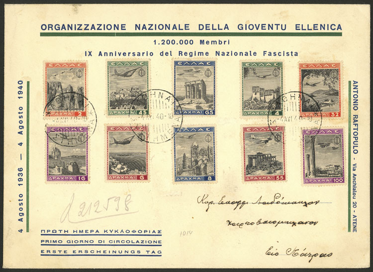Yvert 40/49, 1940 National Youth Organization, the set of 10 values on a cover used on 4/MAY/1940 (it bears more franking on back, view image), very fine quality! (Image) (Image-02)