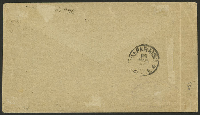 transit mark of Valparaiso on 6/DE, and on arrival in Lima it received postage dues for 15c. (Sc.J23 + J24), very interesting, ex-Herbert Moll. (Image)