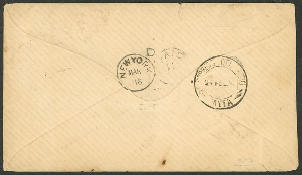 22/FE/1886 Pacasmayo to USA, cover franked with 11c., on back it bears transit marks of Paita 24/FE and New York arrival of 16/MAR, VF quality!
