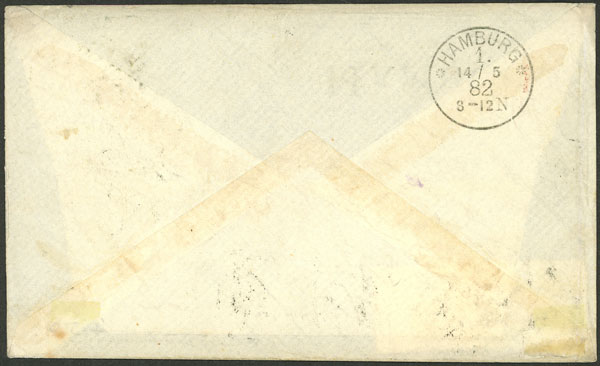 WAR OF THE PACIFIC: Cover sent during the Chilean occupation, on 13/AP/1882 from Callao to Germany franked with 11c. (Sc.N11 + N16), arrival backstamp, excellent quality and very rare, few known covers with these stamps! (Image) (Image-02)
