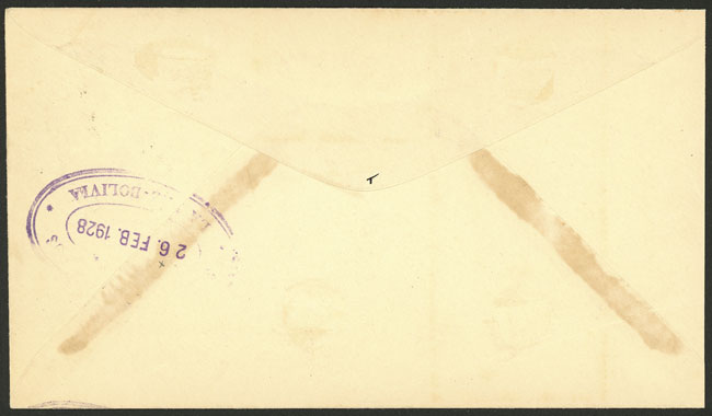 25/FE/1928 Lima to La Paz, experimental flight (via Cañete - Ilo - Arequipa), pilot Doolittle, arrival backstamp, excellent quality! (Image) (Image-02)