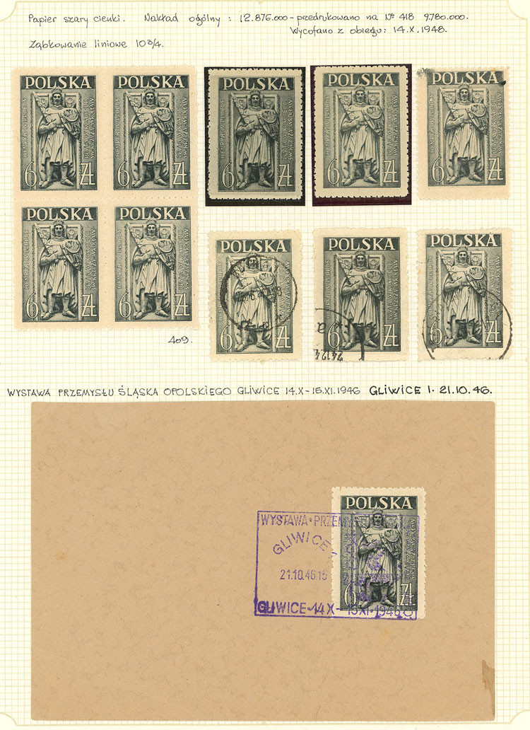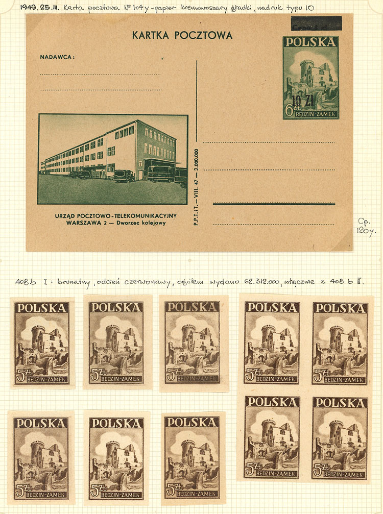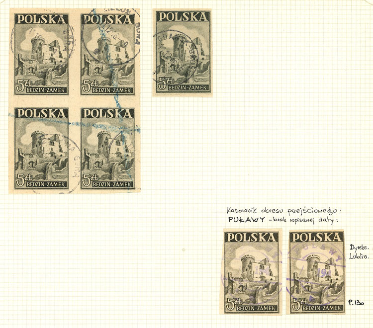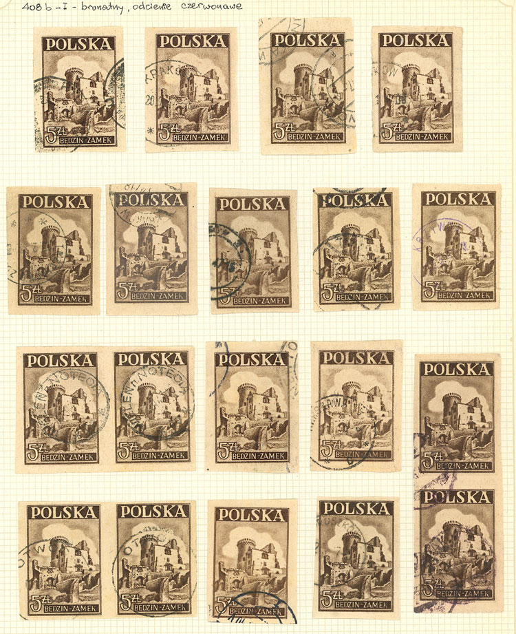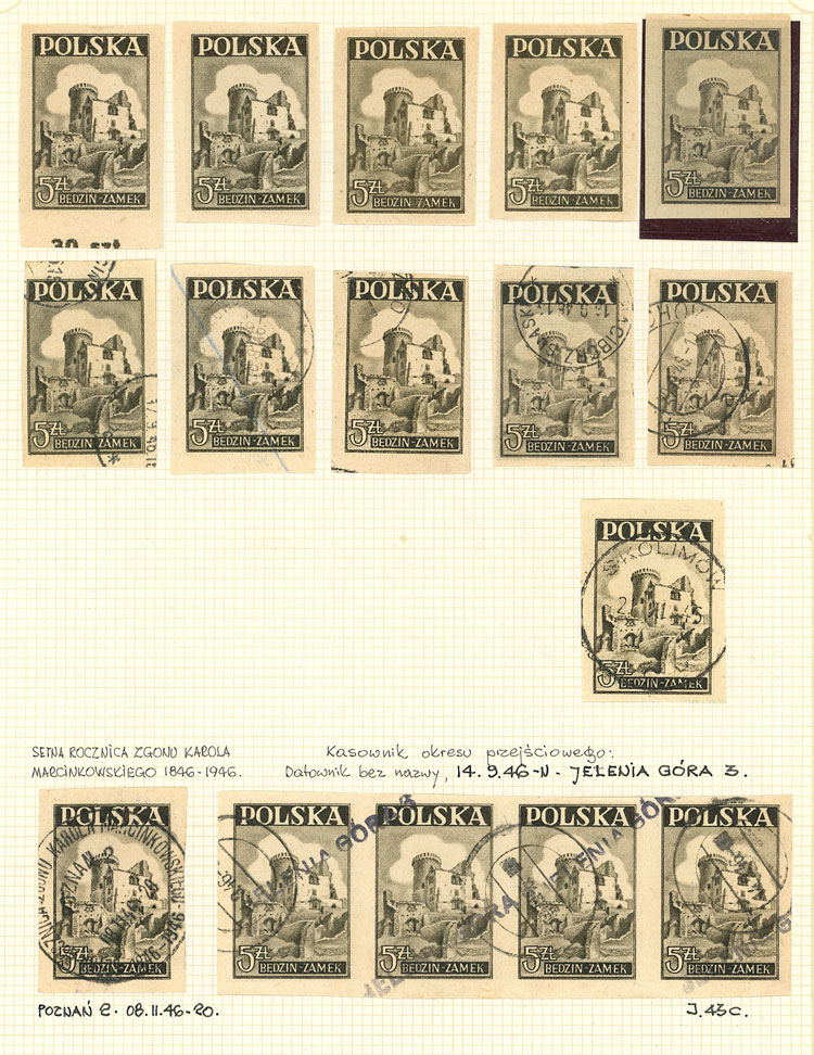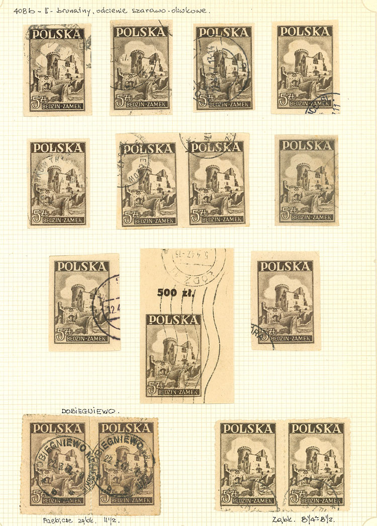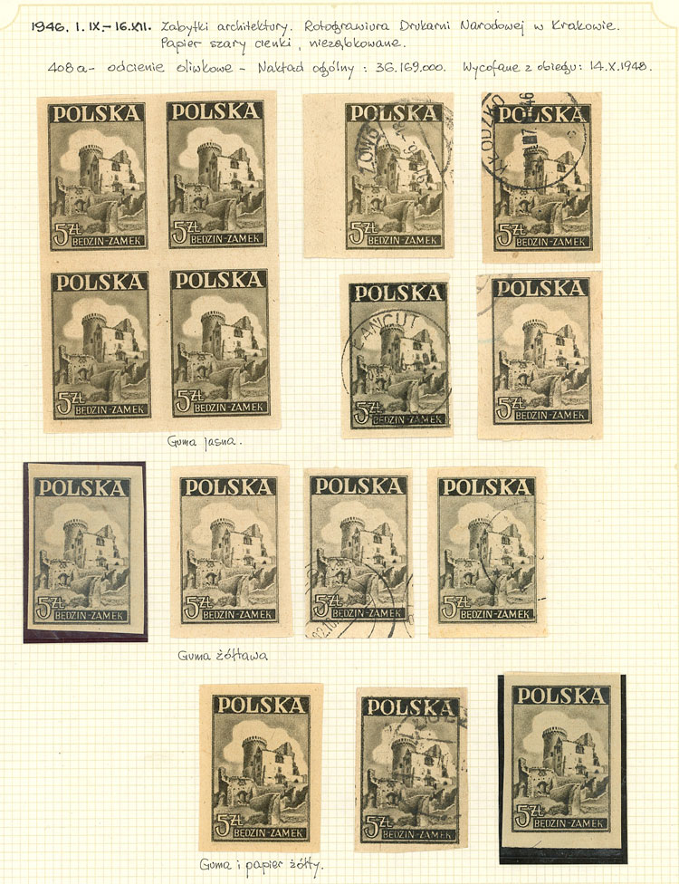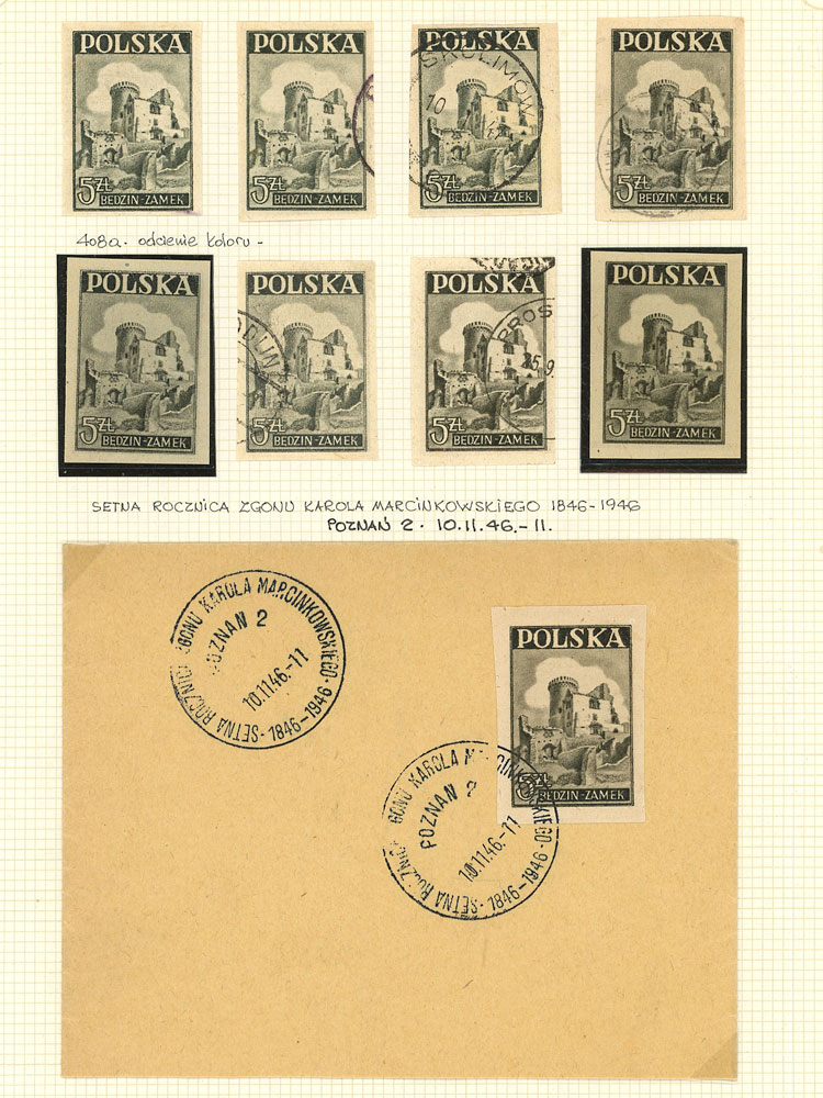 Yvert 477/479, 1946/7 Ruins of the castle of Bedzin, development of the issue on 11 album pages of a great collection, including many imperforate examples (including one on cover), perforation 11 and other varieties, all of excellent
