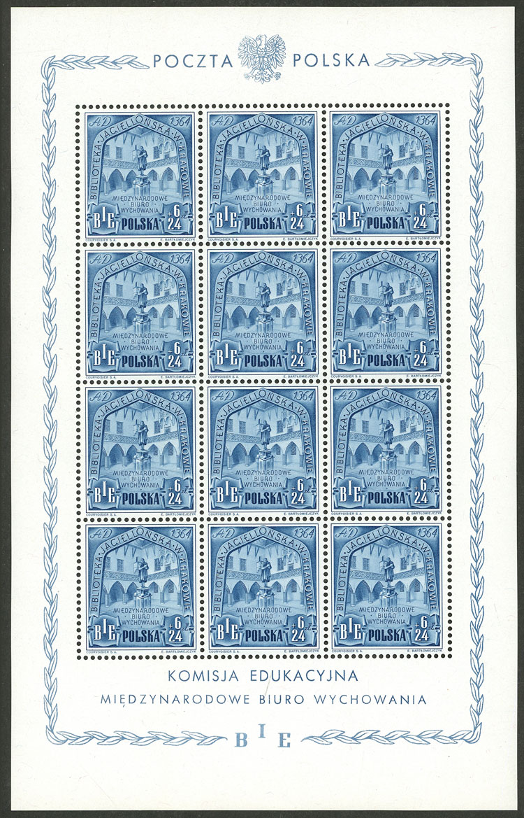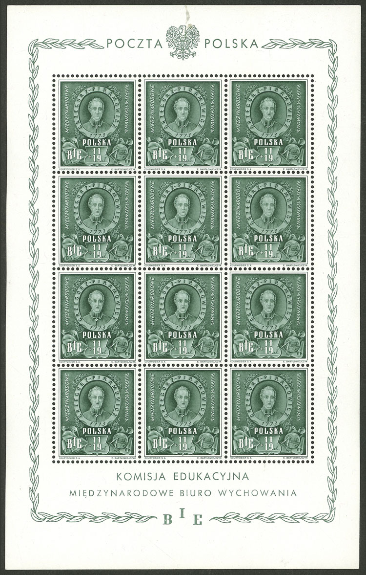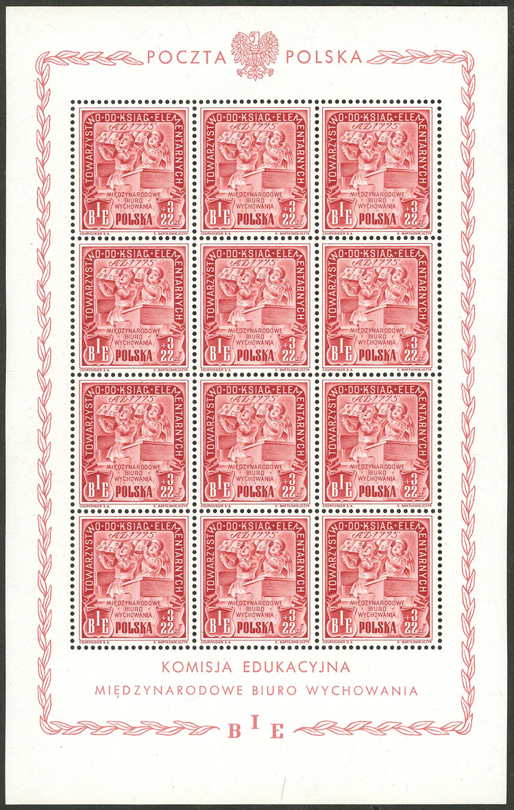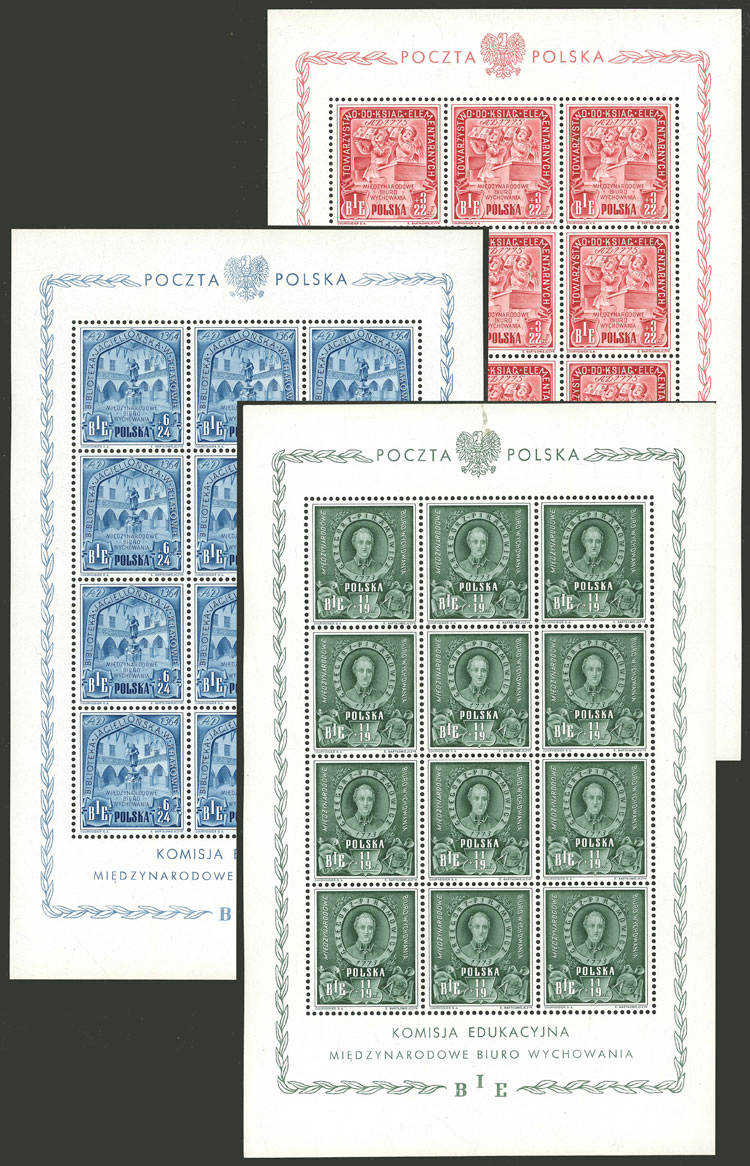 Yvert 500/502, 1947 International Bureau of Education, complete set of 3 s.sheets of 12 stamps each, MNH, superb quality, very rare! (Image) (Image-02)