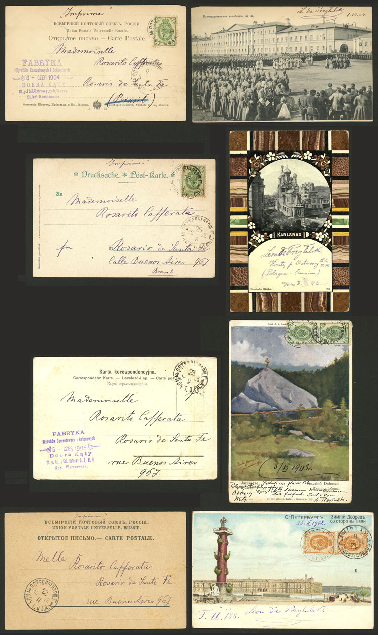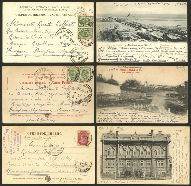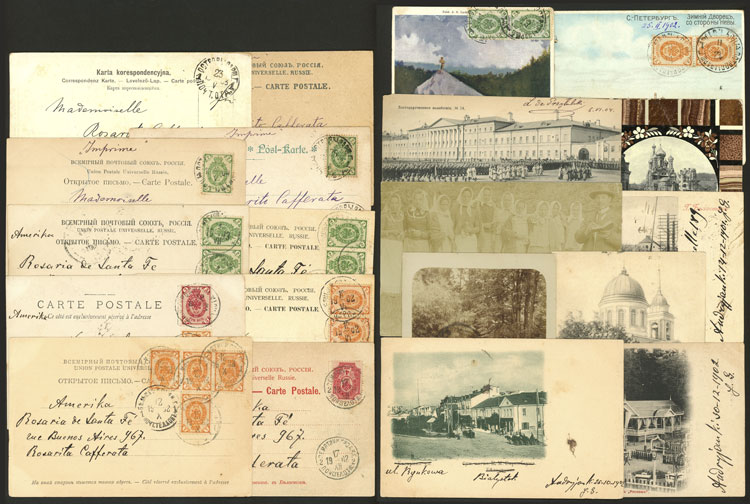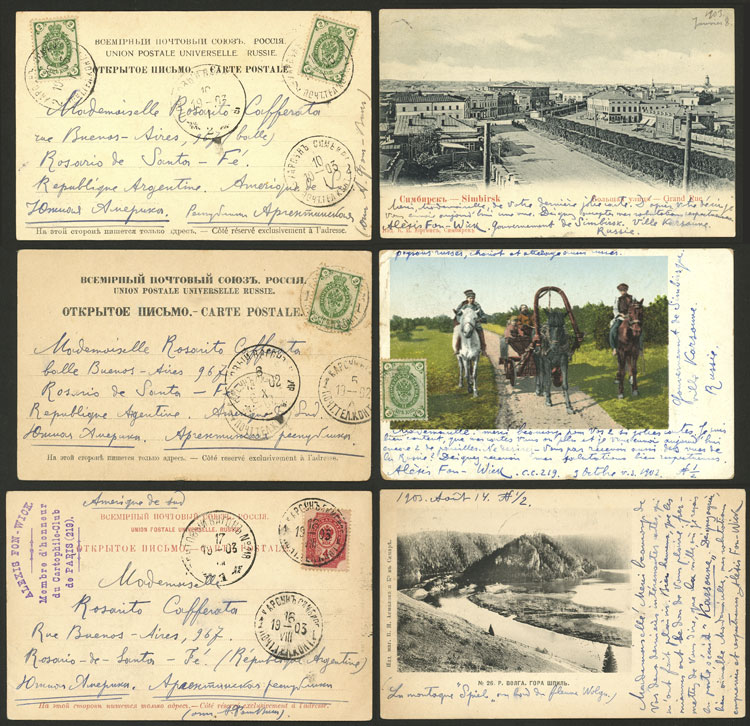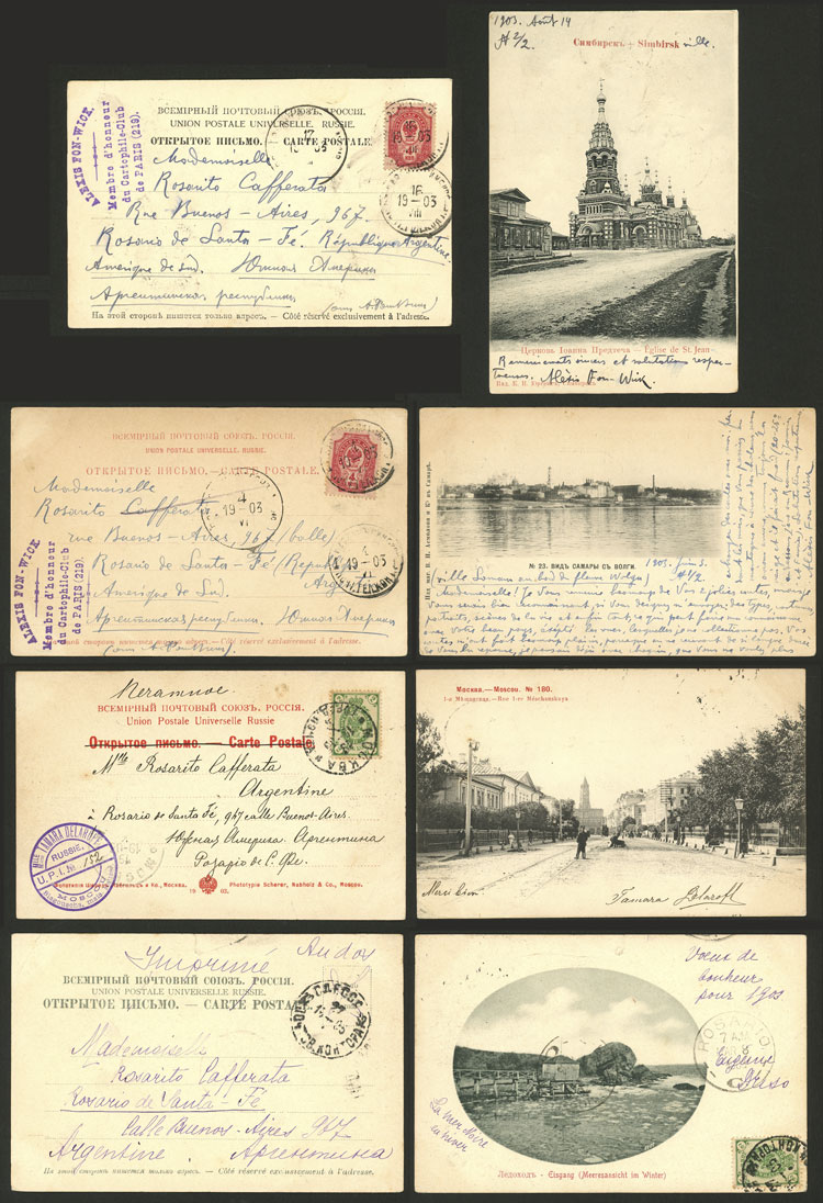 Spectacular postcards sent to Argentina between 1902 and 1905 from several locations, some small and distant (Samara, Karsoune, Simbirsk, Riasan, Camapa, etc.), with a number of interesting postal marks, very good views, excellent general quality! (Image) (Image-02)
