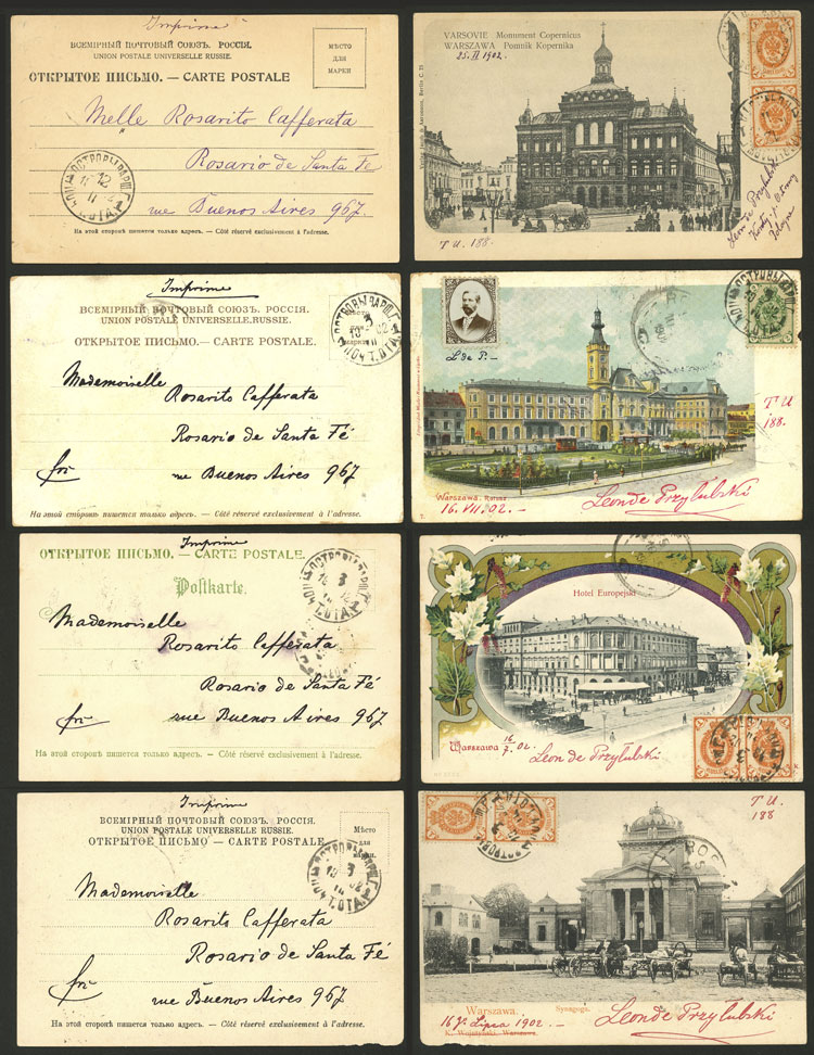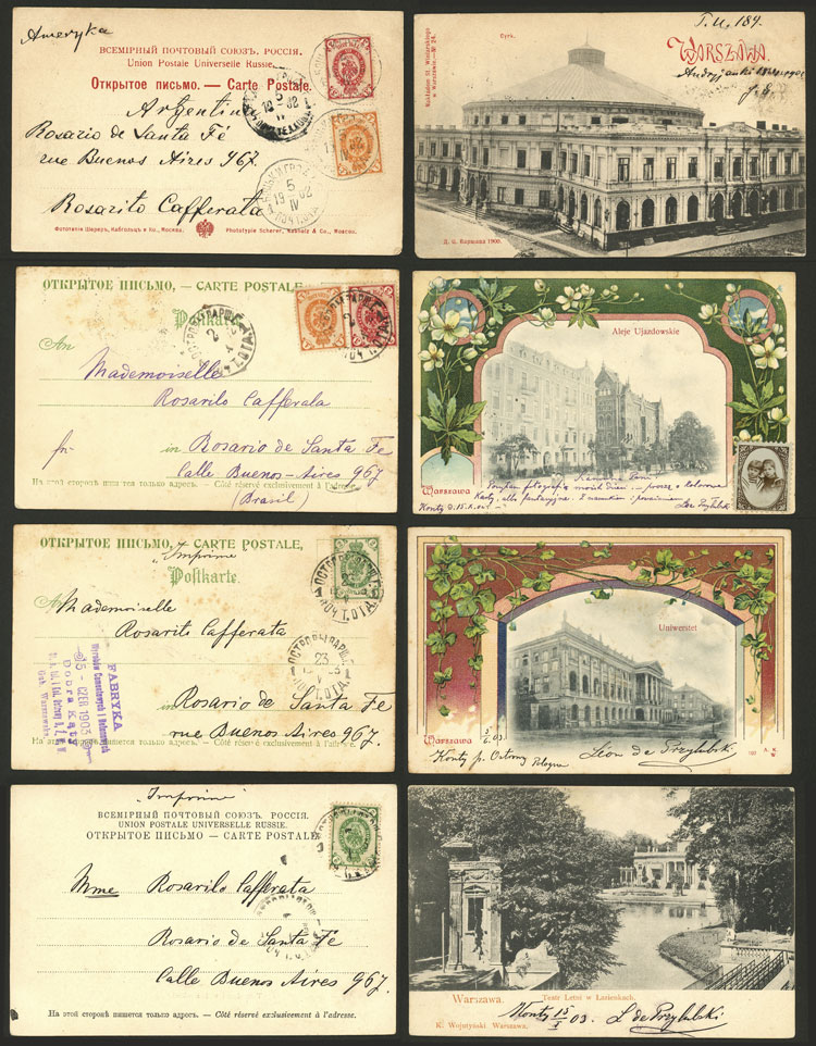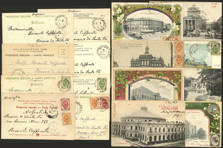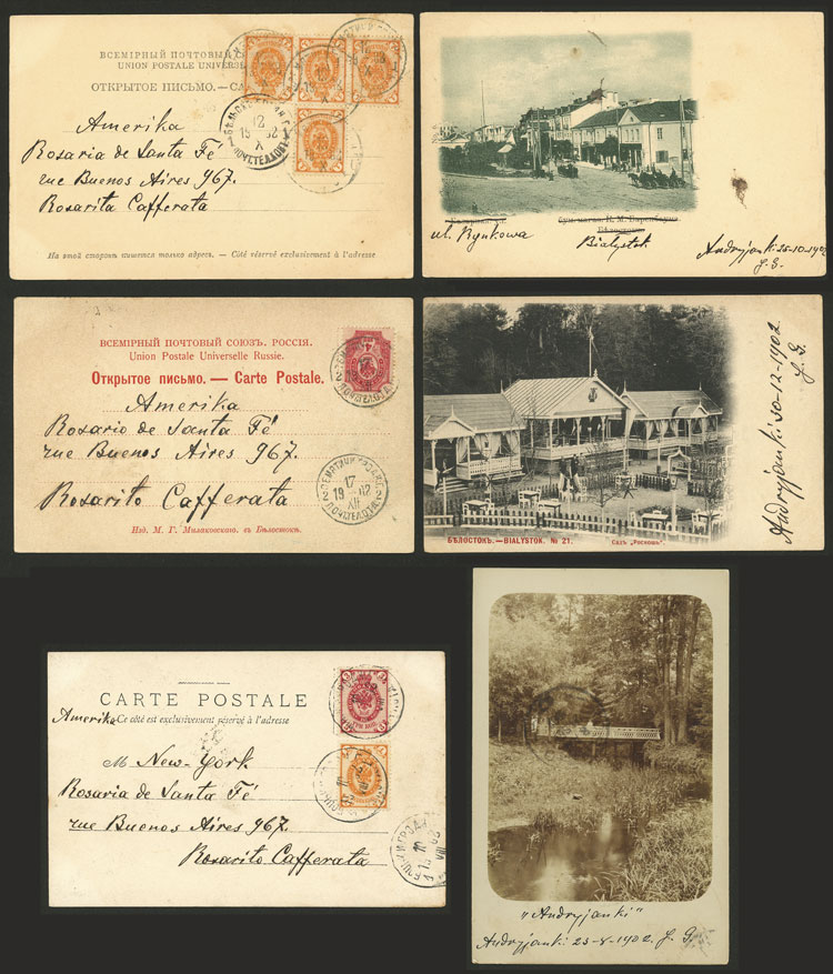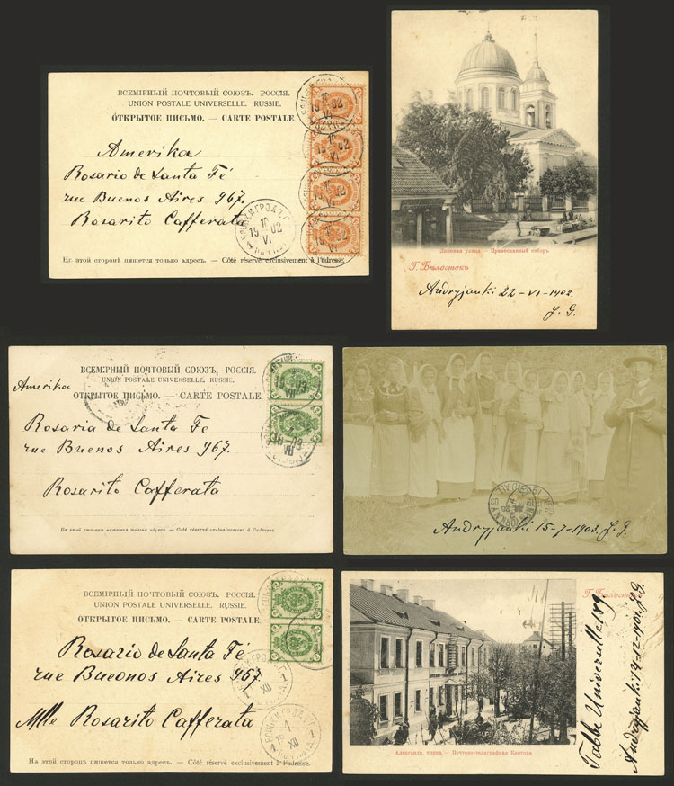 Spectacular postcards sent to Argentina between 1901 and 1904, very good views of several towns (Bialystok, Andryjanki, etc.) and with interesting postal marks, in general of very fine quality (one may have small defects), good opportunity!