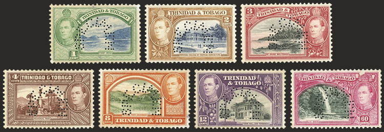 + 120/1 + 122 + 123 + 124 (defective) + 126/7, 1938 Ships, 9 values of the set (including high values) perfed "SPECIMEN", gum a little dark else VF quality!