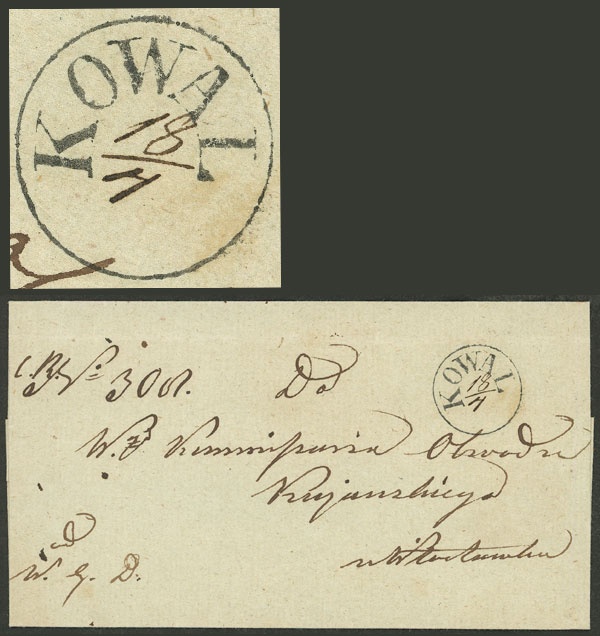 cover (used circa 1817) with circular mark of KOWAL, excellent quality! (Image)