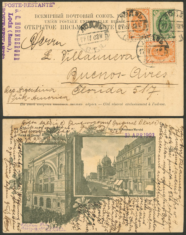 Beautiful postcard sent from Lodz to Argentina on 17/AP/1903, superb quality! (Image)