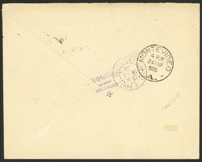 Official cover sent by the National Museum from Montevideo to Paris on 24/JA/1905 with official postage of 8c., arrival backstamp, excellent quality, Ex-Loeb (selling price was US$175) (Image) (Image-02)