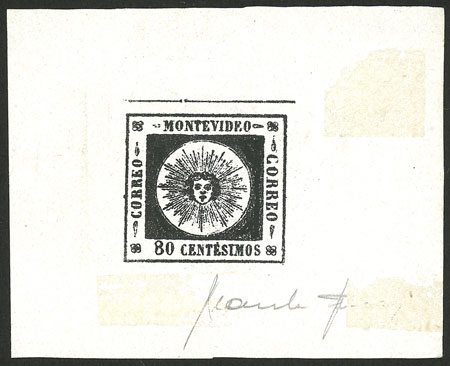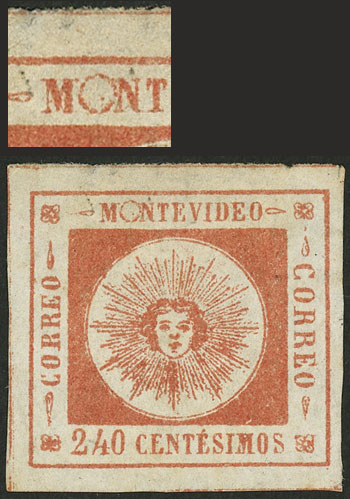 (Sc.12) 1858 240c. Sun with thin figures, variety "First O of MONTEVIDEO large and round", one 5 known examples, mint, very fine quality, rare! (Image)