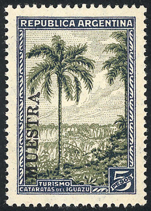 5P. Iguazú Waterfalls with MUESTRA ovpt., MNH, excellent quality, rare! (Image)