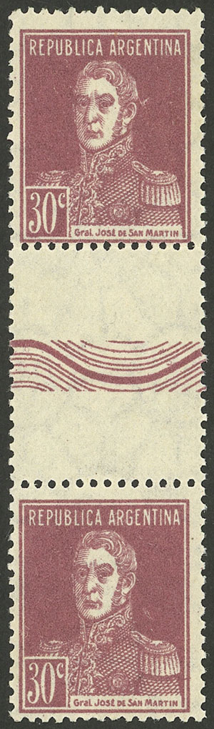 GJ.605EHA, 30c. San Martín w/o period, pair with fancy horizontal GUTTER, MNH (+50%), superb! (Image)