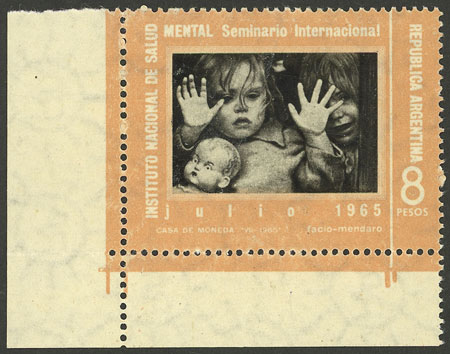 GJ.1332SG, 1965 Mental health (children) PRINTED ON GUM variety, MNH, sheet corner, excellent and very rare! (Image)