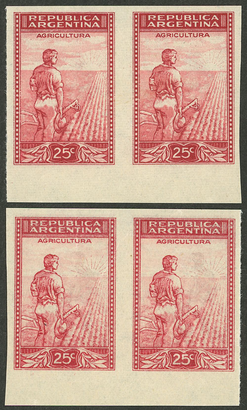 Plowman 25c. without watermark, IMPERFORATE PAIR + double impression, one on back on gum, MNH (+30%), excellent quality, rare! (Image)
