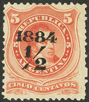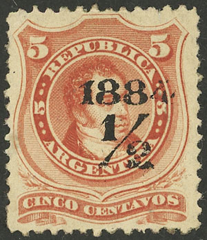 5c. Rivadavia, with a little darkened gum, low start (Image)