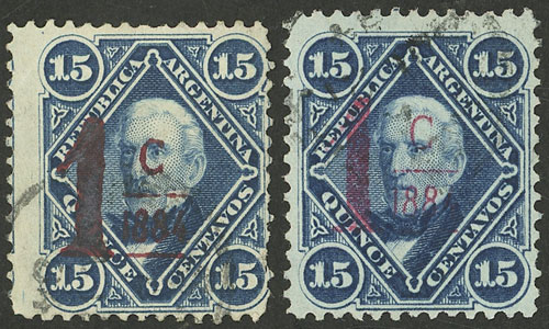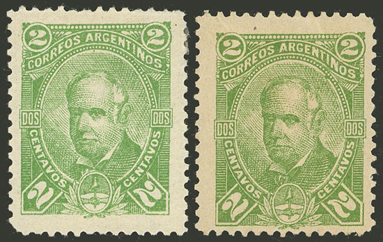 GJ.81/82, 2c. Vicente López, both types, VF (Image)