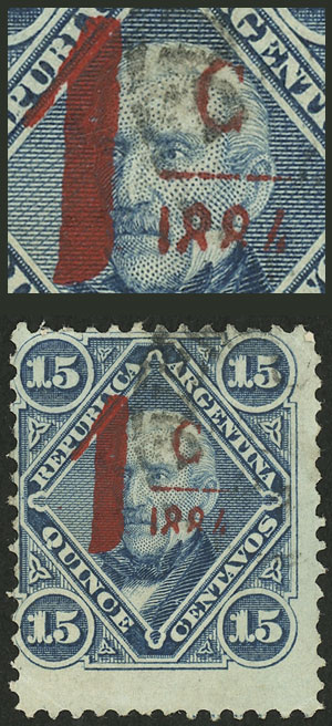 1c on 15c., light and very dark carmine overprint (Image)