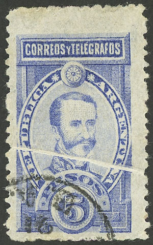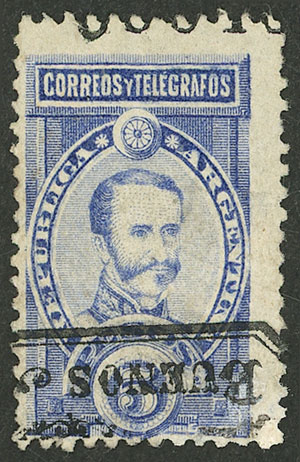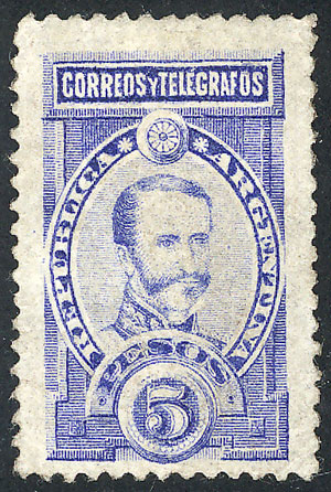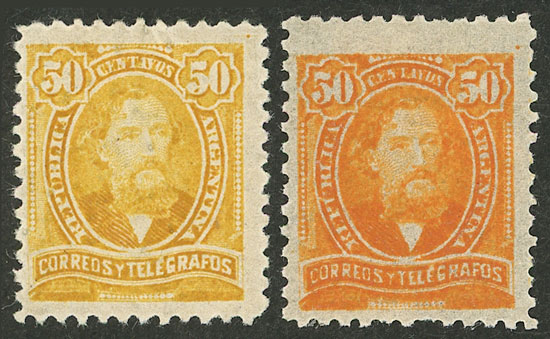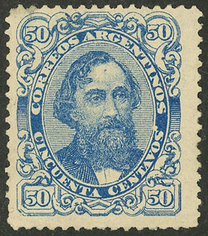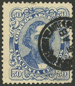 50c. Mitre, high value of the set re-gummed, position 5 on the report, with VARIETY: "S´" apostrophe after CENTAVOS, some minor thins on back, rare! (Image)