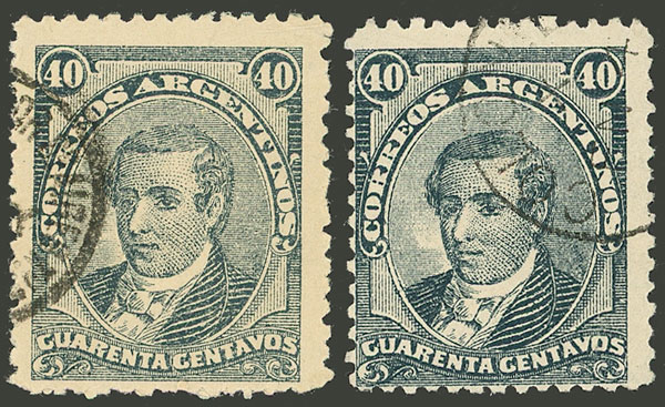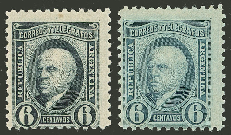 6c. Sarmiento, perf 12, VARIETY: stamp much wider than usual (stealing part of the neighboring stamp) (Image)