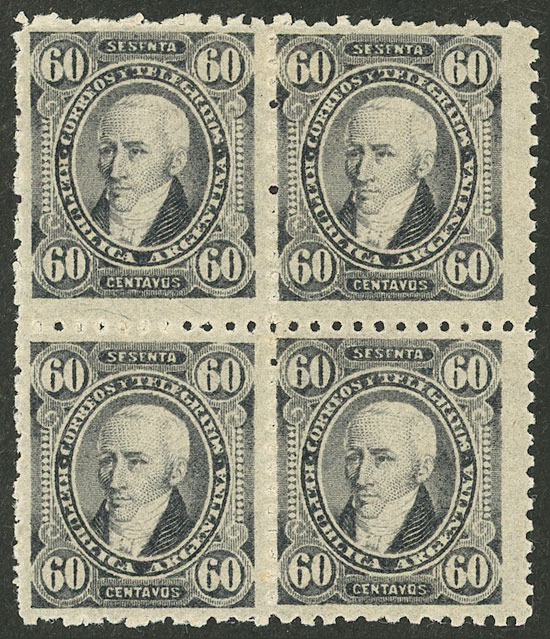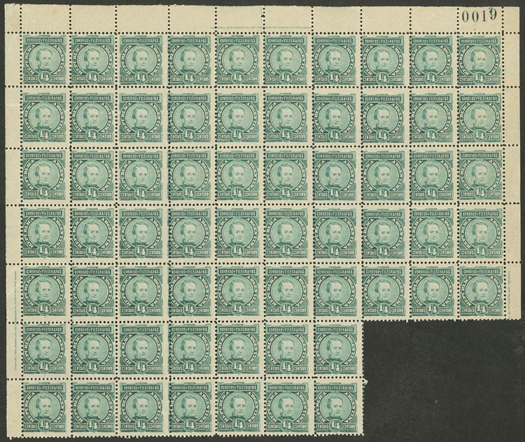 large block of 64 stamps, with sheet number and printer imprint, VF quality (Image)