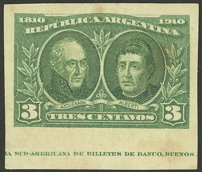 PROOF with sheet margin and printer imprint, on medium wove paper, in green, VF (Image)