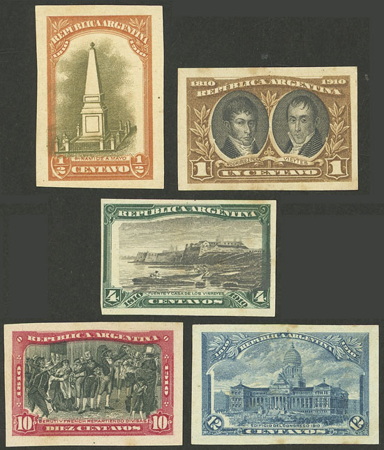 other values, 5 PROOFS of different values of the set on medium wove paper, different color combinations, VF (Image)