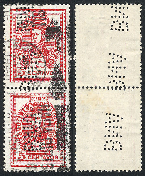 pair, with partial triple "BNA" perfin (Banco de la Nación Argentina) (Image)