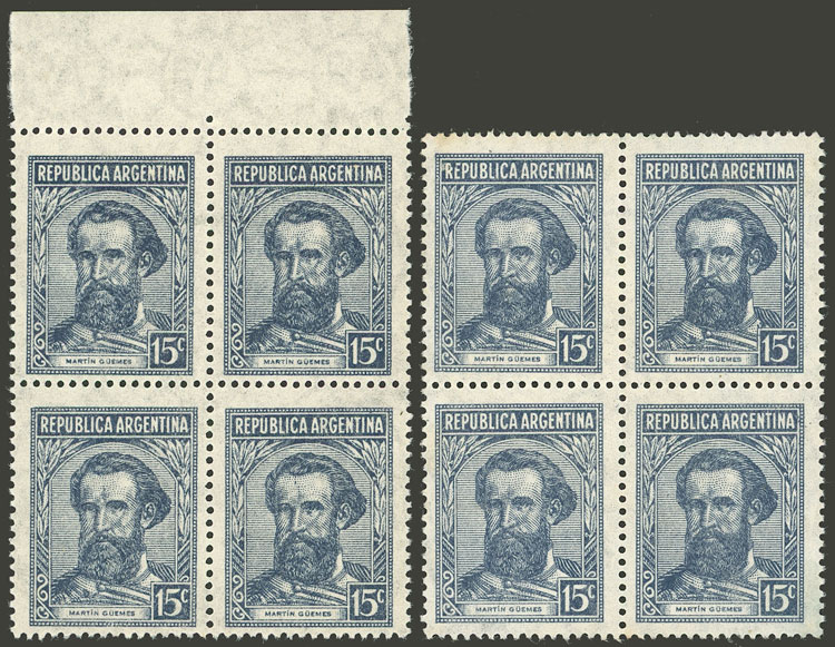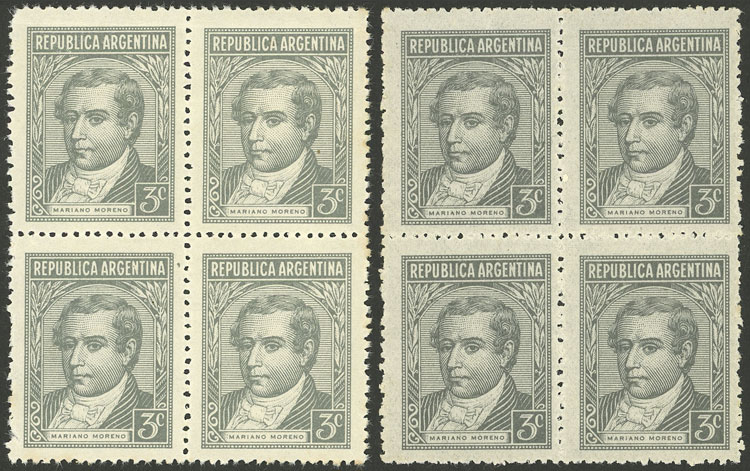 2 blocks of 4 printed on different papers (grené + compact pattern) (Image)