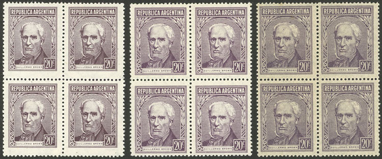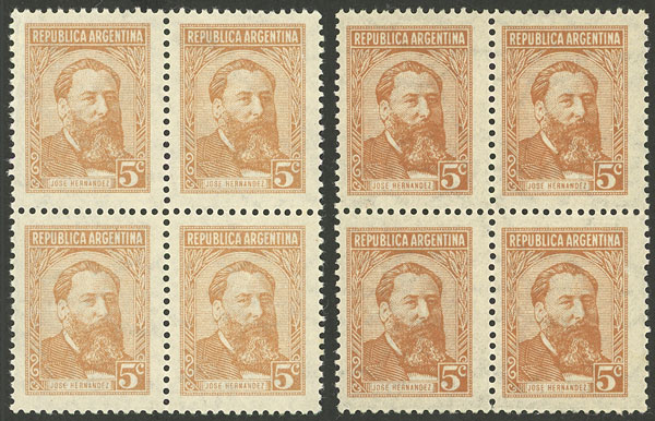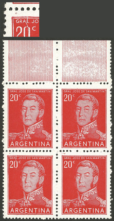 marginal block of 4, one with VARIETY: "E" of ARGENTINA with accent (the variety is MNH), VF (Image)