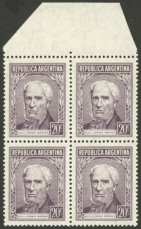 marginal block of 4, PROOF on medium paper, in violet, VF quality (Image)