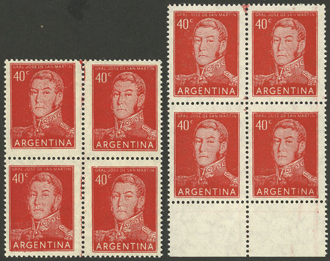 2 blocks of 4 from very different printings (Image)