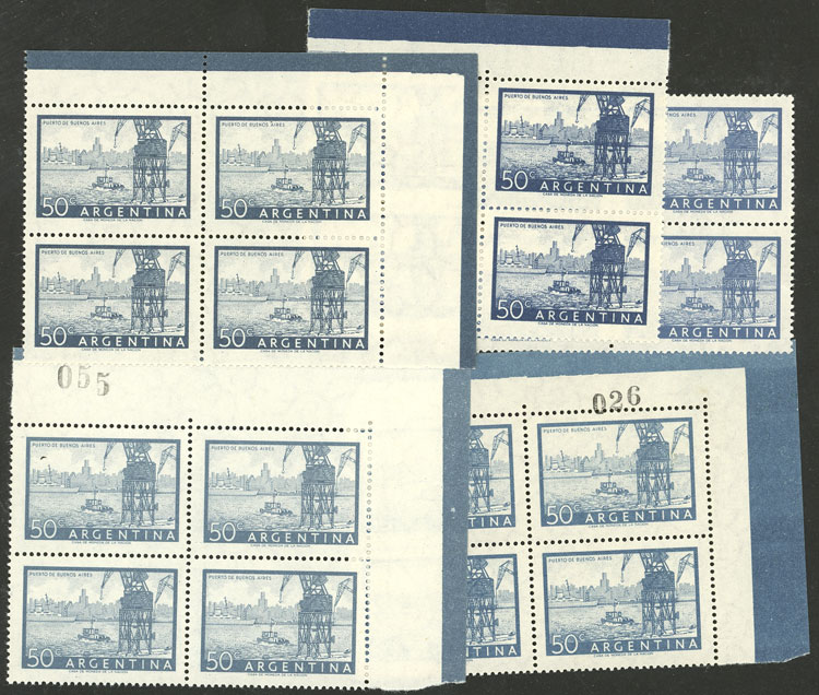 GJ.1042B, 5 blocks of 4 in different shades, a few examples with minor defects on back (Image)
