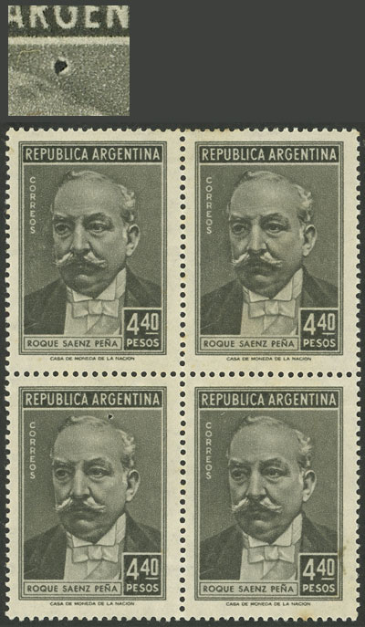 marginal block of 4 printed on thin paper (Image)