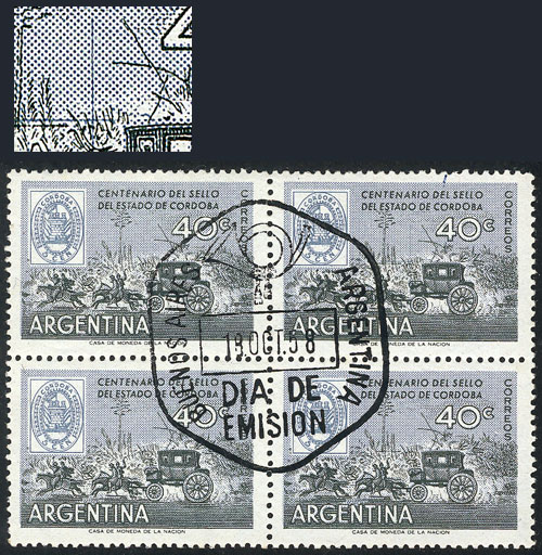 GJ.1113a, block of 4 with first day postmark, one with VARIETY: Post next to the stagecoach (pos.2), VF (Image)