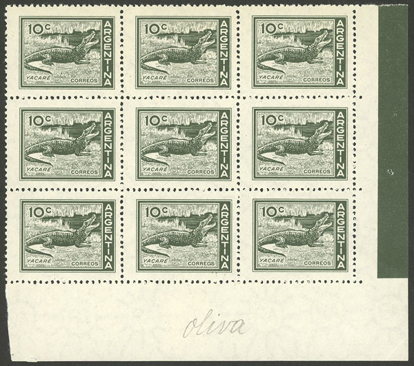 corner block of 9 in olive green (Image)